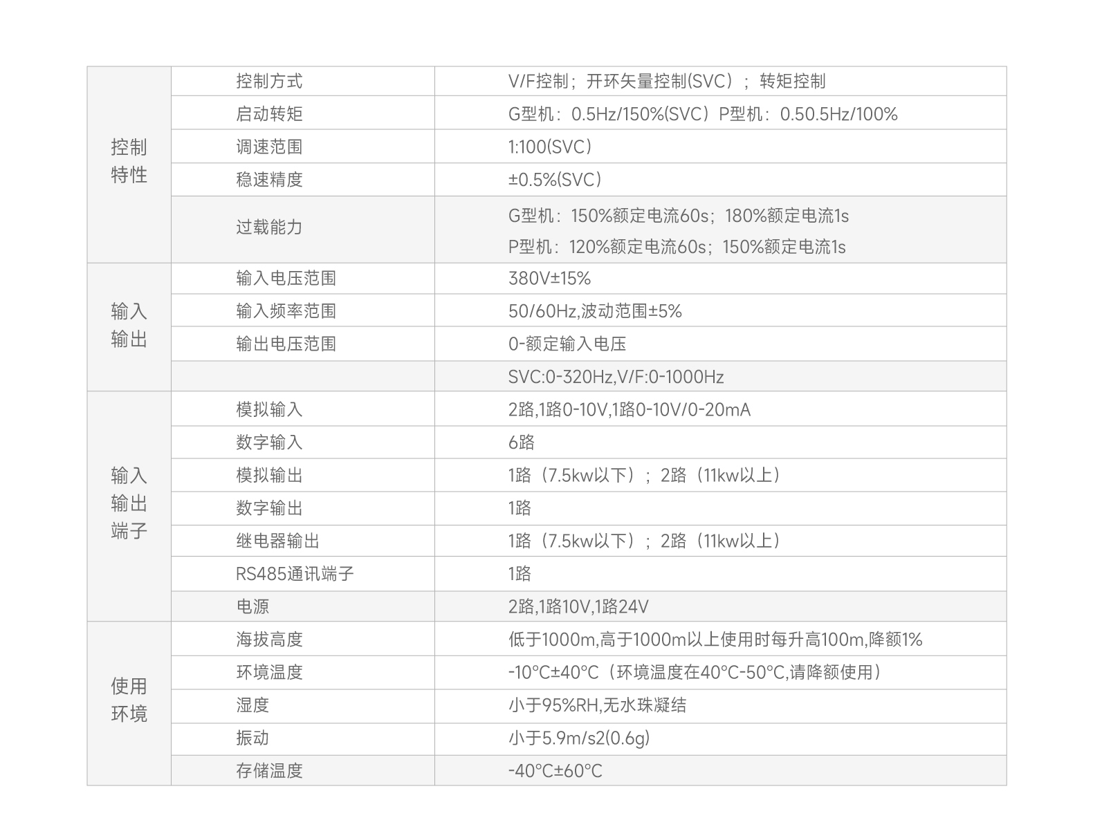 SVC控制:最大輸出頻率320Hz VF控制:最大輸出頻率1000Hz VF控制最大1000Hz頻率輸出。 過勵(lì)磁制動(dòng)功能, 實(shí)現(xiàn)快速制動(dòng)。0.75-22kW內(nèi)置制動(dòng)單元